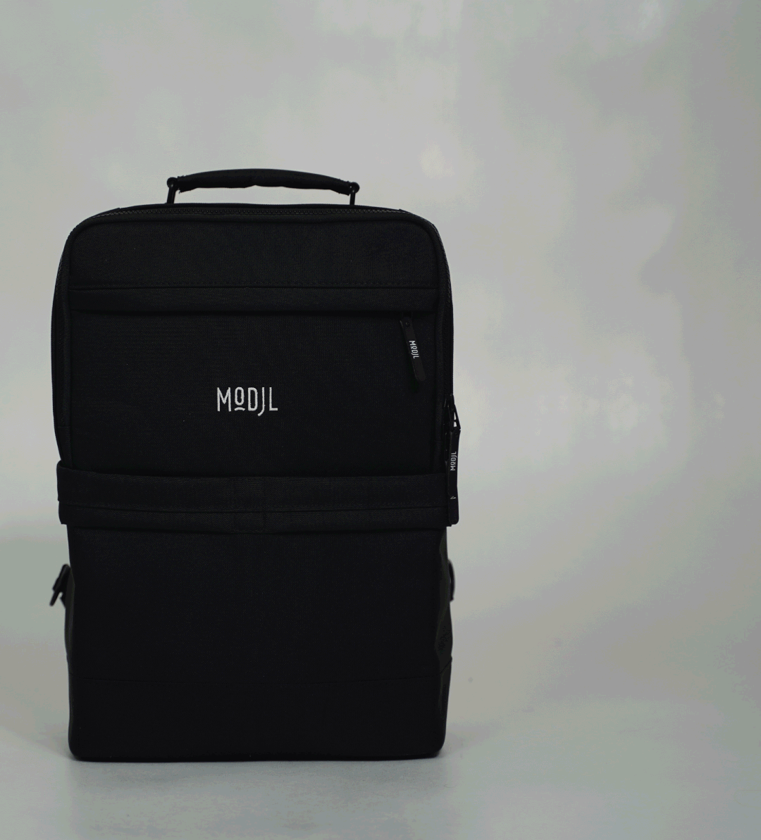 Adding or removing items from your MODJL backpack is easy due to its modular design. Simply open the back panel, unhook the G-hook, loosen the module band and place your desired items. Also see the How it works page.