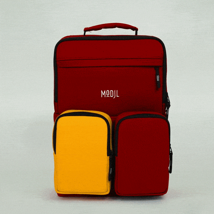 To wear your MODJL modules separately, you can use "The Loop" accessory. "The Loop" is a versatile attachment that allows you to wear individual modules from your MODJL backpack as standalone bags or accessories. Simply detach the desired module from your backpack, attach "The Loop" to the designated points on the backside of the module, and you can now wear it over your shoulder or across your body. This way, you can customize your carrying options and adapt to different situations while still enjoying the functionality and style of your MODJL modules. Also see the How it works page.